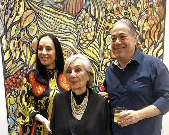 Regina Accioly, Tânia Carneiro Leão e o filho Rodrigo no Mueseu do Estado (Foto: Divulgação)