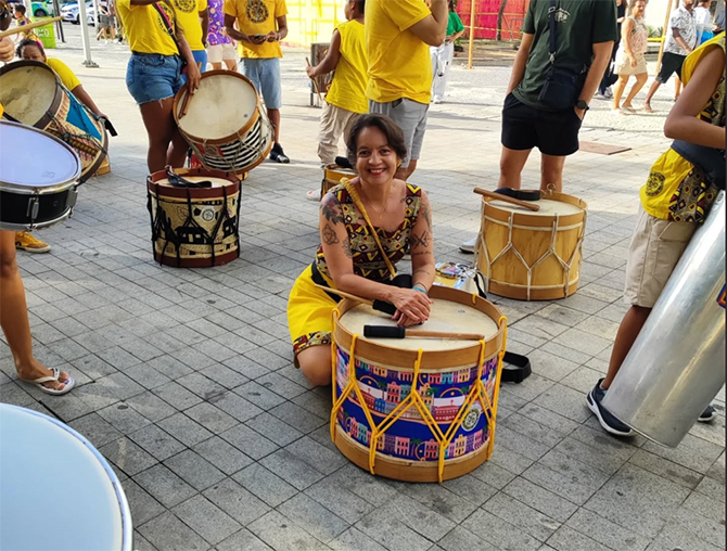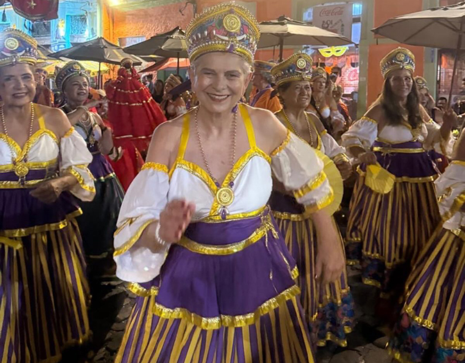 A engenheira Maria do Carmo Sobral no carnaval do Maracatu Cabra Alada (Foto: Face)