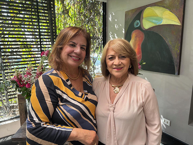 Sandra Multinick, aniversariando, e Rose Paes Barreto, ontem durante almoço no Cecilia (Foto: Fernando Machado)