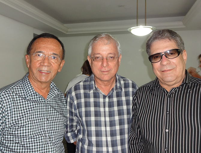 Os advogados Cícero Vieira, Giovanni Pontes e Fernando Lisboa no aniversario de Aron Mandel (1943/2026), em 2013 (Foto: Fernando Machado)