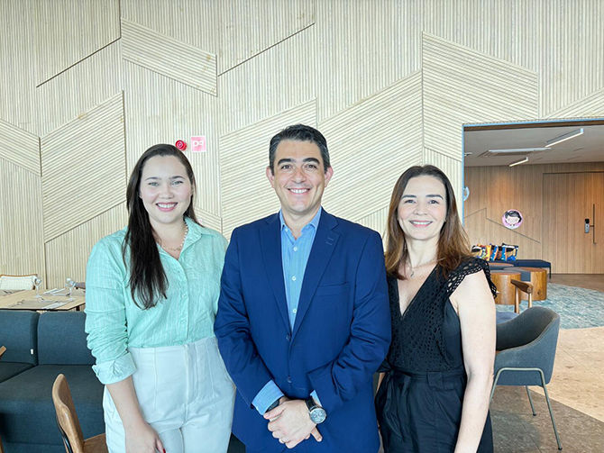 O gerente geral do Novotel Luiz Gustavo Alves entre Hellen Lopes e Carolina Oliveira (Foto: Fernando Machado)