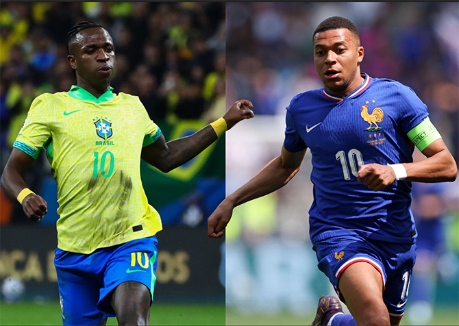 Vini Jr e Mbappé são os principais jogadores de Brasil e França e também destaques do Real Madrid na temporada (Foto: Alamy)