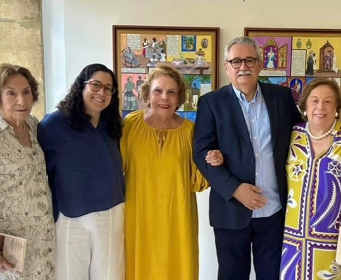 Segunda-feira, à tarde, na Academia Pernambucana de Letras, tivemos a abertura da exposição Cenas Freyrianas, em comemoração aos 100 anos da acadêmica Marly Mota. São 10 quadros que retratam as cenas freyrianas, inspirado no livro Casa Grande & Senzala, da artista plástica Marly Mota que doou, faz algum tempo, para a Fundação Gilberto Freire.