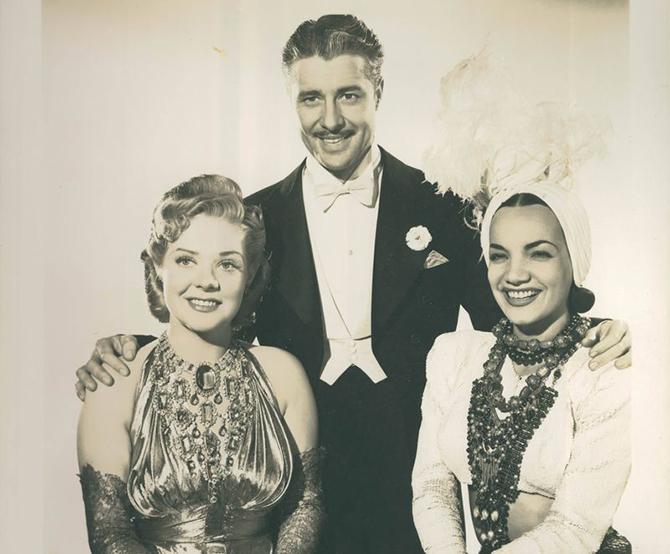 Alice Faye, Don Ameche e Carmen Miranda em foto promocional do filme Uma Noite no Rio, em 1941 (Divulgação)