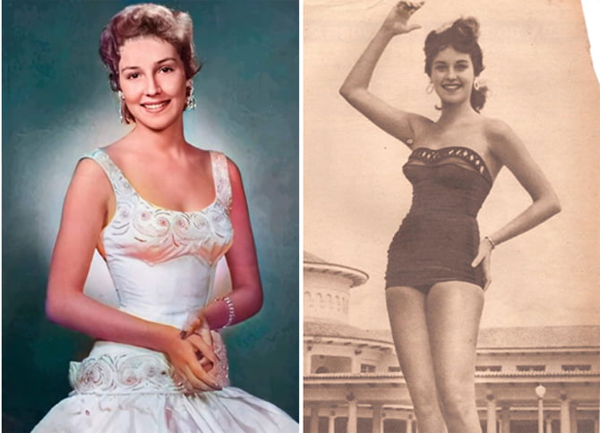 Emília em traje de noite e de banho (Fotos: O Cruzeiro)