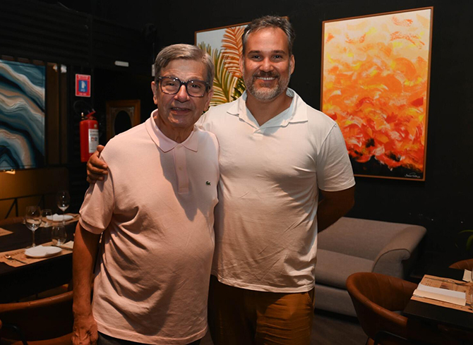 Sérgio Moury Fernandes, da Viva a Vida 60+, e Eduardo Couceiro, do Instituto Incentiva, no lançamento da corrida Desafio Viva a Vida 60+, no Entre Vinhos (Foto: Carol Bradley)