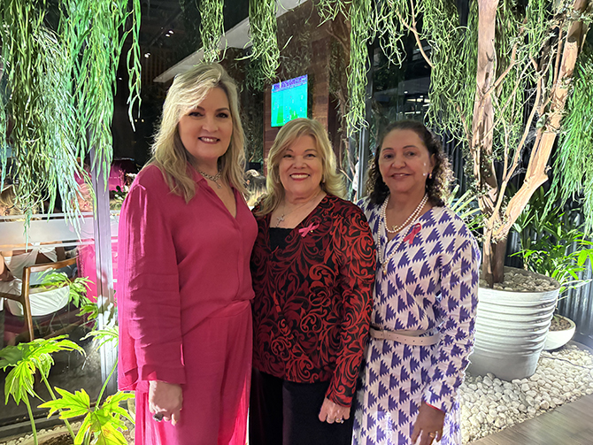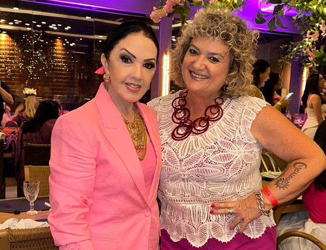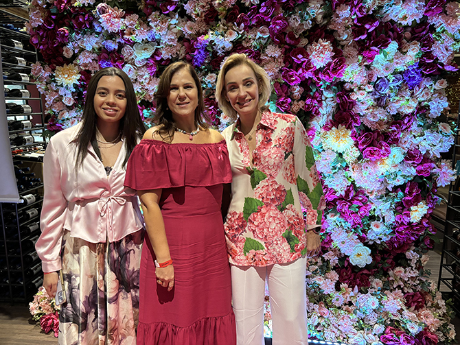 A médica explicou o motivo do Outubro Rosa e ainda fez um balanço dos números de mulheres atingidas pela doença no Brasil e no mundo. A decoração estava linda, com destaque para o Mural da entrada, lembrando uma cortina de flores, criação da Grillo. No centro do salão repousava uma árvore também de flores, por sinal belíssima. A decoração do ambiente foi grifada a quatro mãos, Érica Neves e Natália Paes Barreto.
