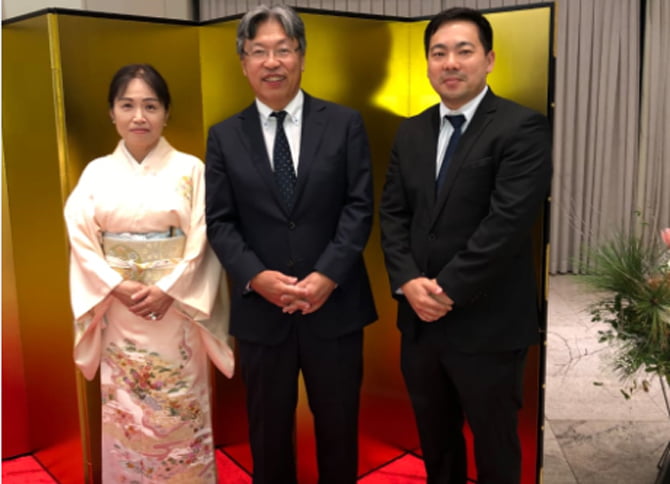 Yoshie e Hiroaki Sano com o presidente da Associação Cultural Japonesa do Recife Kenichi Iwata Junior (Foto: Consulado do Japão)