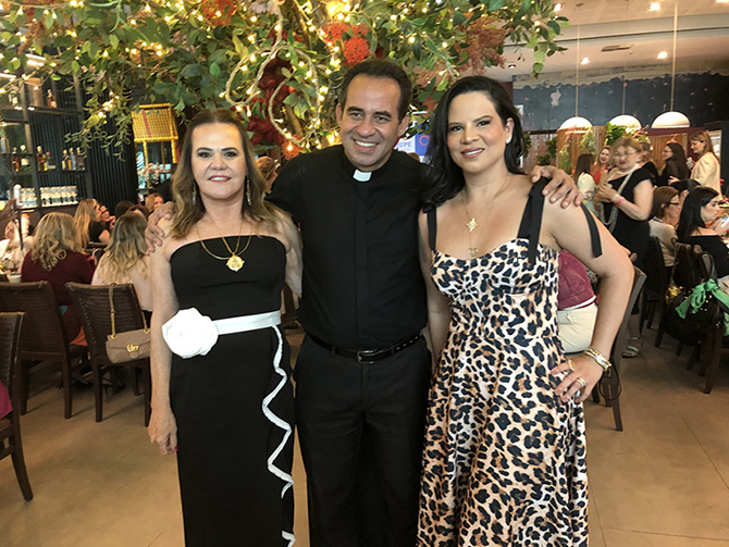 Padre Arlindo entre a presidente Sandra Paes Barreto e a vice Amanda Campos (Foto: Fernando Machado)
