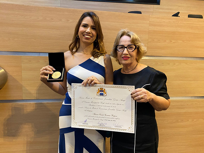Tássia Canto formou-se em Jornalismo, pela UNICAP, em 2005. Fez Pós-Graduação em Ciência Política também na UNICAP. Trabalhou na Secretaria de Imprensa do Estado, na Folha de Pernambuco como fotógrafa, e foi Coordenadora, Editora de Texto e produtora dos principais programas e telejornais da TV Jornal/SBT. Thássia Canto trabalhou com Graça Araújo. Pois bem, Tássia recebeu quinta-feira, na Câmara Municipal do Recife o Prêmio Mérito da Comunicação Graça Araújo.