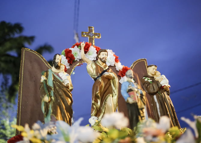A Procissão dos Santos Juninos é um dos momentos mais bonitos do São João. Além de forró, quadrilha e comidas típicas, o São João é tempo de rezar e agradecer. E isso aconteceu domingo à noite, homenageando os quatro santos juninos: São José, Santo Antônio, São João e São Pedro. A concentração aconteceu no Morro da Conceição, com o pároco padre Renato Azevedo fazendo a sagração e a bênção do andor e das bandeiras pelo segundo ano consecutivo. Em seguida, os fiéis acompanharam o cortejo com destino ao Sítio Trindade.