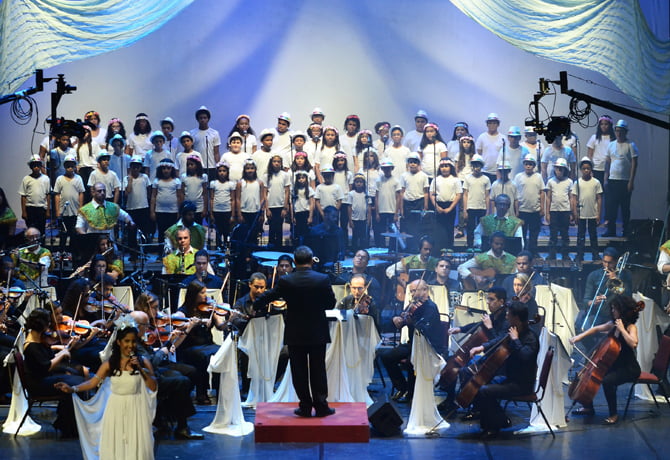 José Renato Accioly regendo a Orquestra e o Coro (Foto: Divulgação)