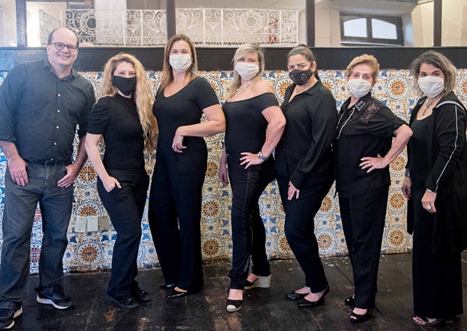Fernando Raphael, Fabiana Schreiner, Renata Jardim, Ana Paula Goes, Ana Cristina Santos, Regina Machado e Mônica Maria na luta pela volta do trabalho (Foto: Instagram)