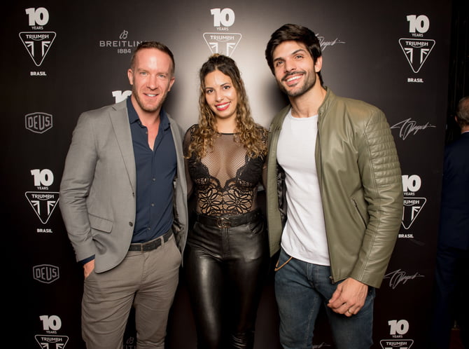 Martin Whalley, Amanda Pagliari e Lucas Fernandes na festa Triumph (Foto: Cleiby Trevisan)