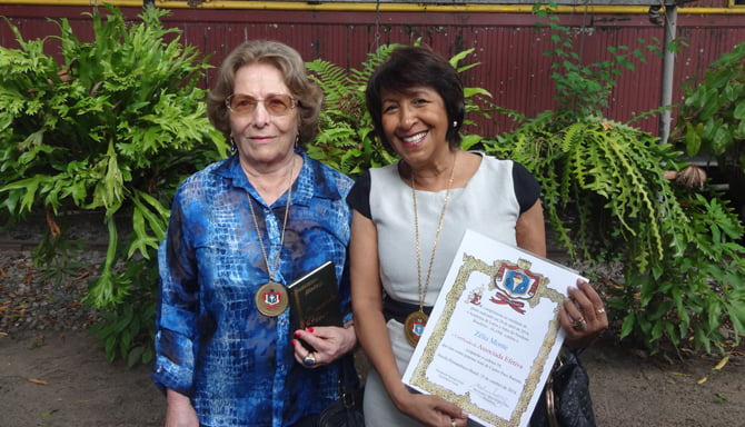 Depois foi a fez de Melchiades convidar a acadêmica Lourdes Sarmento fazer a saudação à nova imortal. Foi um discurso bonito e com recheio de causos. Depois Ariadne Quintella fez seu discurso de posse na cadeira 48. Visivelmente emocionada falou da doença que está enfrentando desde o ano passado. E deu uma lição de fe, esperança e caridade. Lembrou o patrono Josué de Castro (1908/1973) e seu antecessor José Nivaldo Barbosa de Souza. No final Melchiades Montenegro entregou os diplomas para Zélia e Ariadne.