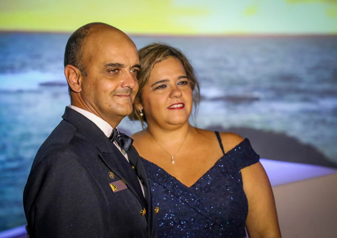 O jantar grifado por Josy Recepções estava maravilhoso e teve como pratos principais bacalhau ao forno e filé mignon ao molho de madeira, acompanhado de arroz com amêndoas. Sem dúvida, uma noite de muita elegância, onde as mulheres capricharam. Os oficiais deram o tom de pompa e circunstancia com suas roupas de gala. A anfitriã, Taciana Moury, estava impecável, num modelo de renascença azul Royal assinado pela artesã de Bonito, Lourdes Bernardo.