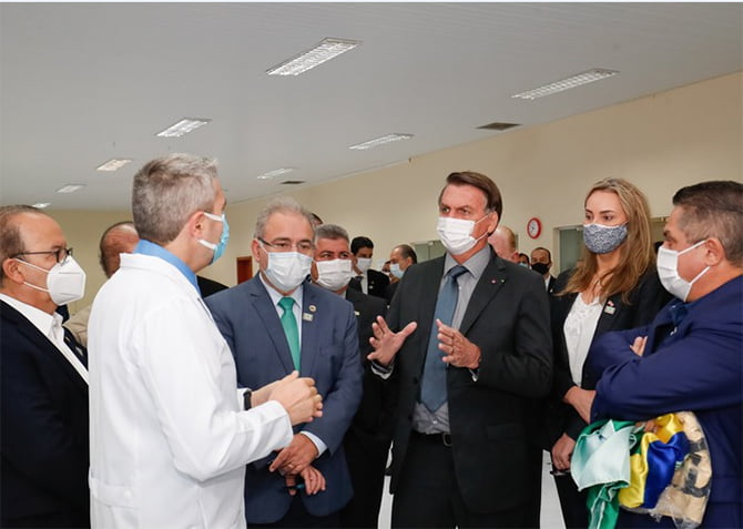 O Presidente Jair Bolsonaro visitou, na manhã desta quarta-feira, o Centro Avançado de Atendimento Covid, instalado no Centro de Eventos de Chapecó em Santa Catarina. A estrutura tem 75 leitos de enfermaria e 20 leitos na Unidade de Tratamento Semi Intensivo, onde os pacientes recebem tratamento adequado até terem alta ou uma transferência para o Hospital Regional do Oeste.