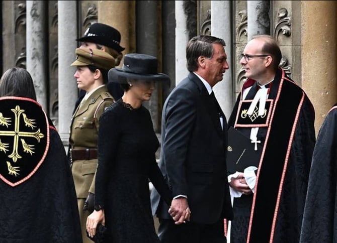 Na Abadia de Westminster, quando da cerimônia do enterro da Rainha Elizabeth II, o presidente Jair Messias Bolsonaro, se posicionou numa cadeira bem melhor do que a do presidente Joe Biden. O Mito continua fazendo história. Sem dúvida uma demonstração do crescimento do prestigio do nosso Presidente.