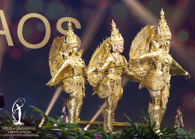 A melhor Alegoria, ops, traje típico foi do representante de Laos, On-anong Homsombath (Foto: Reuters)