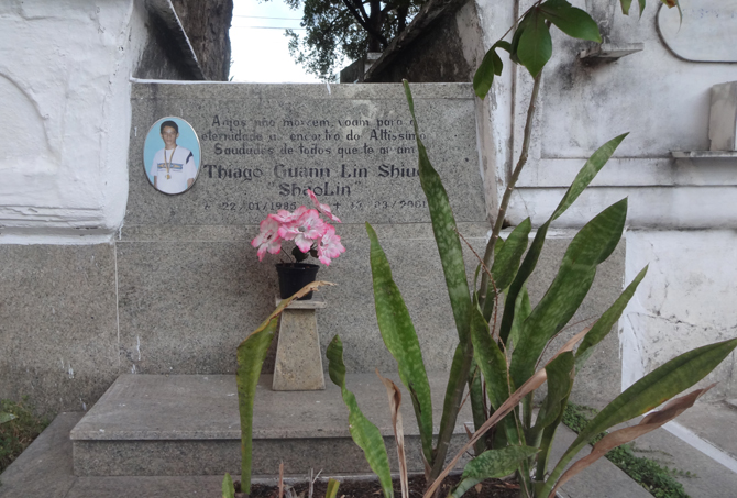 Simples mas tocante o tumulo de Thiago Guan Lin (Foto: Fernando Machado)
