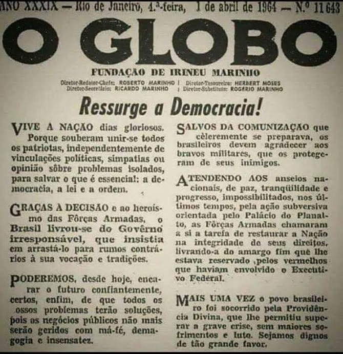 A primeira pagina do extinto jornal carioca Correio da Manhã