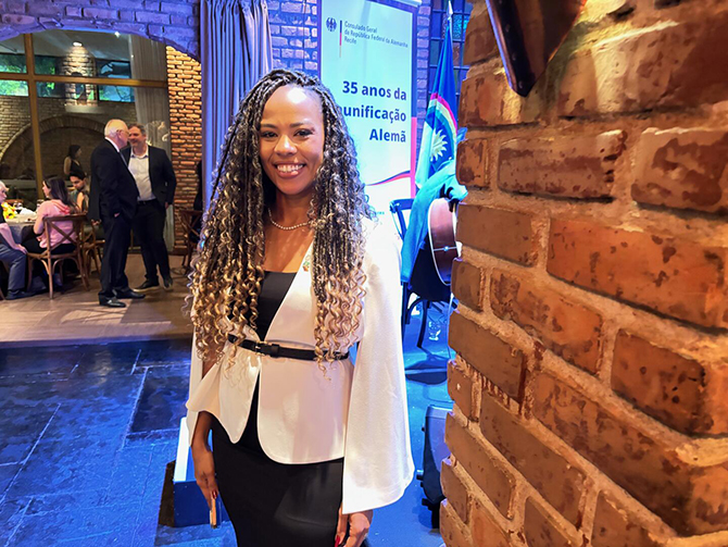 Das mais elegantes e prestigiadas, a recepção que o cônsul-geral Quinta-feira, Johannes Bloos e a consulesa Beatrice Wöhle movimentaram, quarta-feira, no Restaurante Famiglia Giuliano, em Boa Viagem, para comemorar os 35 anos da reunificação da Alemanha. A mestre de cerimônia foi Elaine Hasse que iniciou a festa convidando a cantora Bella Schneider para cantar os hinos do Brasil e da Alemanha, acompanhada da sua banda.