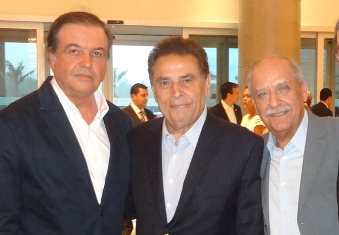Luiz Felipe Brennand, João Lyra Neto e João Pacífico no coquetel do Sheraton (Foto: Fernando Machado)