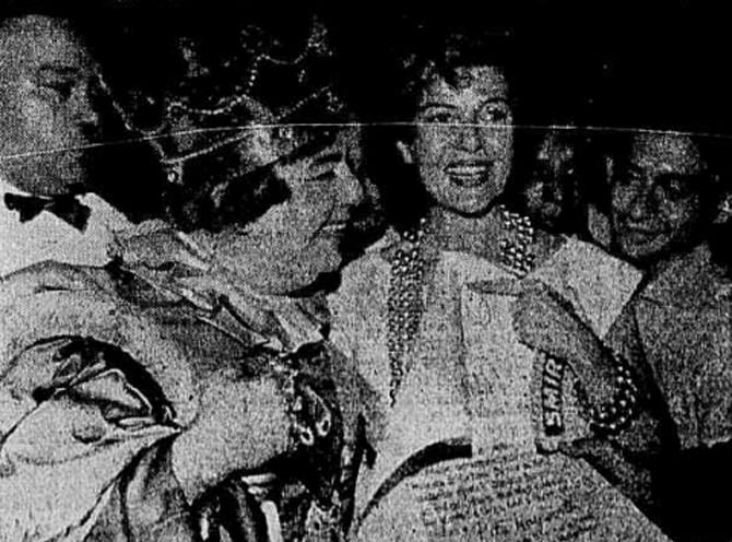 Joaquim Menezes e a tria Rita Hayworth no baile do Copacabana Palace de 1962 (Foto: Reprodução do Jornal A Noite)