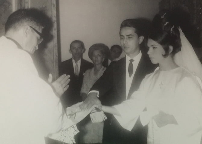 Há 57 anos, se casavam na Capela da Jaqueira, Lucia Monteiro de Moraes e Gabriel Bacelar. A cerimônia foi conduzida pelo Padre Bragança.