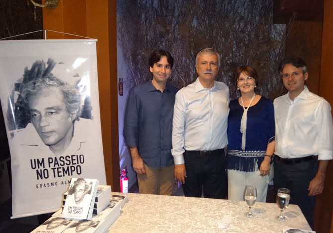 Erasmo estava muito elegante num terno adquirido na França, ao lado da esposa Betty, dos filhos Carlos Frederico, Elizabeth Cristina, Bernadette de Lourdes e Adolfo Jorge, dos oito netos. Um Passei no Tempo recebeu o prefácio do economista José Maria Aragão e tem a orelha foi grifada pelo ex-presidente da Fundação Joaquim Nabuco, Luiz Otavio de Melo Cavalcanti.