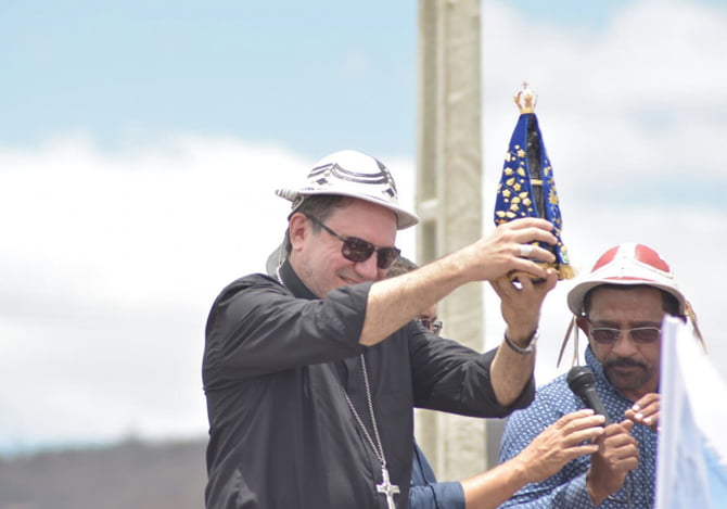 Dom Magnus Henrique ergue a imagem de N. S. Aparecida (Foto: Divulgação)