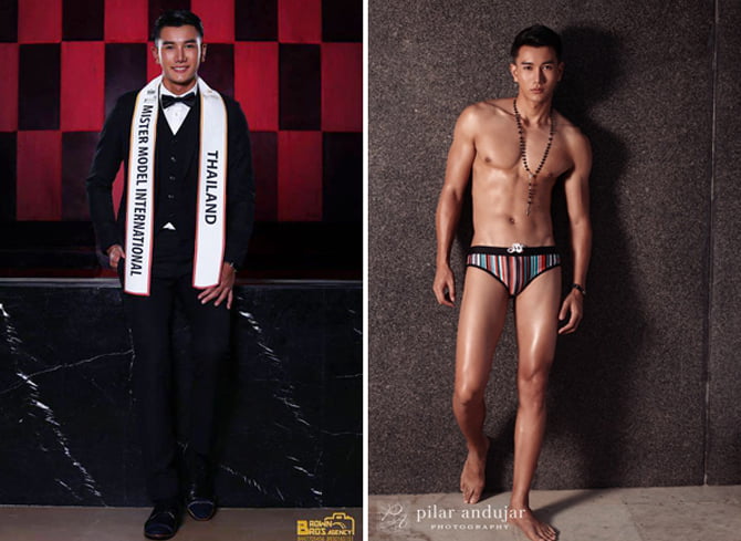 Narapat Sakunsong, Mister Model International, de terno e sunga (Fotos: Concurso)