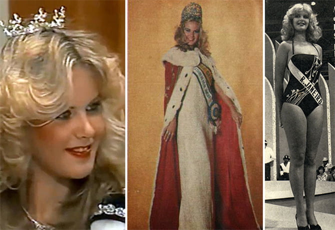 Evelyne Schoroeter em close, vestido e maiô (Foto: Divulgação/Manchete)