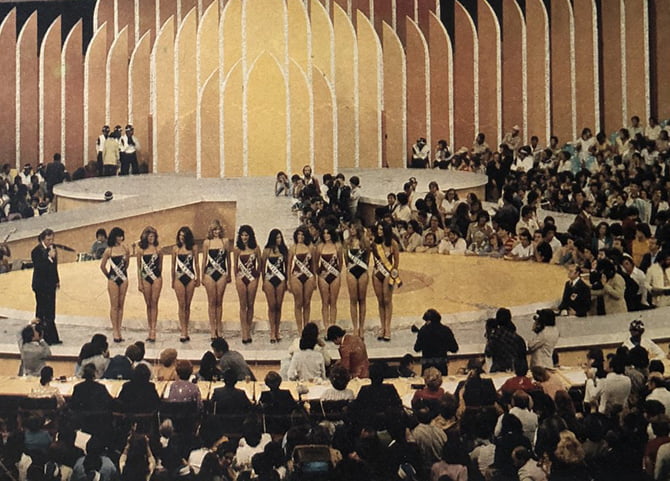 Paulo Max abrindo o concurso no palco do Ginásio (Foto: Manchete)