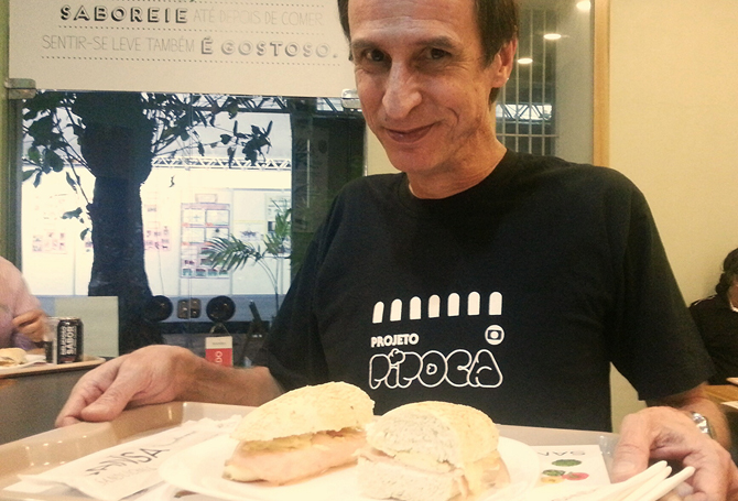 O ator Aramis Trindade degustando a comida do Sansa (Foto: )