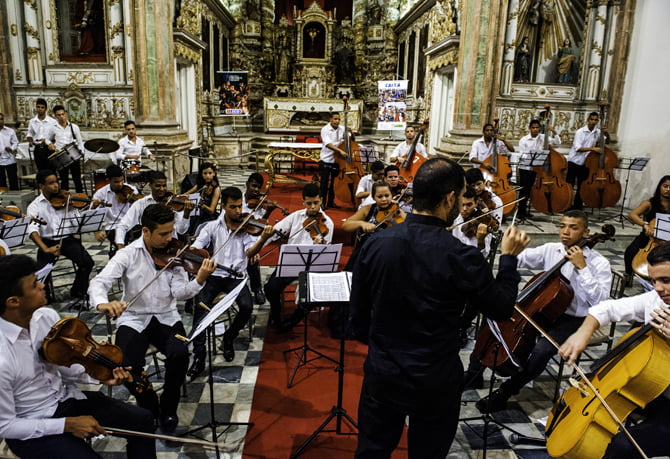 O maestro Nilson Galvão regendo a Orquestra Criança Cidadã (Foto: Divulgação)