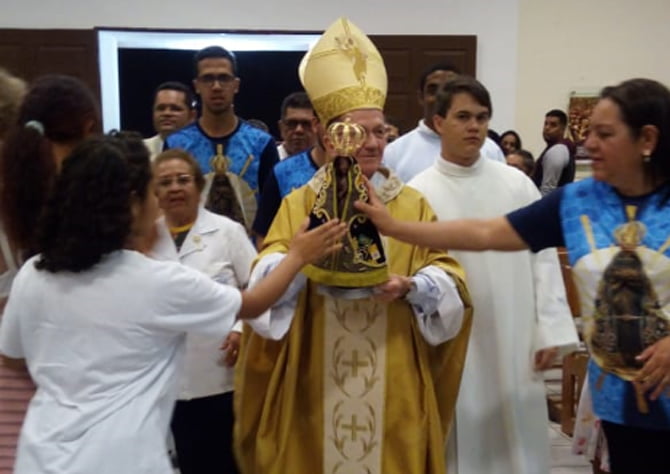 Dom Dino Marchió com a imagem de N. S. Aparecida (Foto: Divulgação)