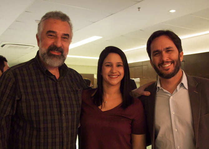Peter Kutuchian, fundador do HotelierNews, Carol Baía e Rodrigo da Fonte, da Insight Feiras & Negócios (Foto: Lumos)