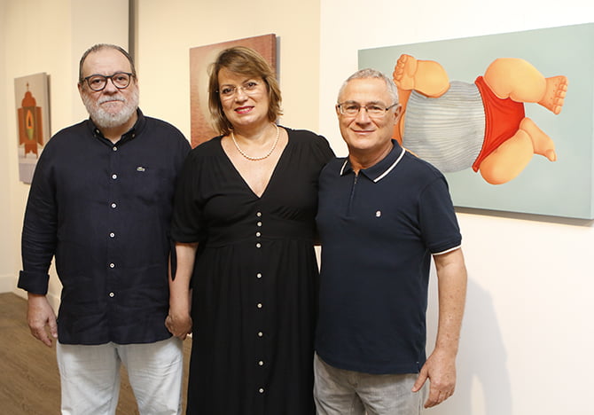 Fernando Neves e Luciana Carvalho, Renato Valle durante exposição anterior (Foto: Cristiana Dias)