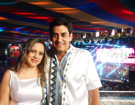 O jornalista George Guilherme, à côté Karla Barbosa, era uma presença elegante e simpática, no camarote da Globo no Baile Municipal.