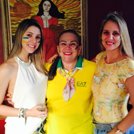 A diva Marina Paiva assistiu ao jogo do Brasil e Colômbia, na casa da filha Nanie e José Fernando Lobo, na Jaqueira.