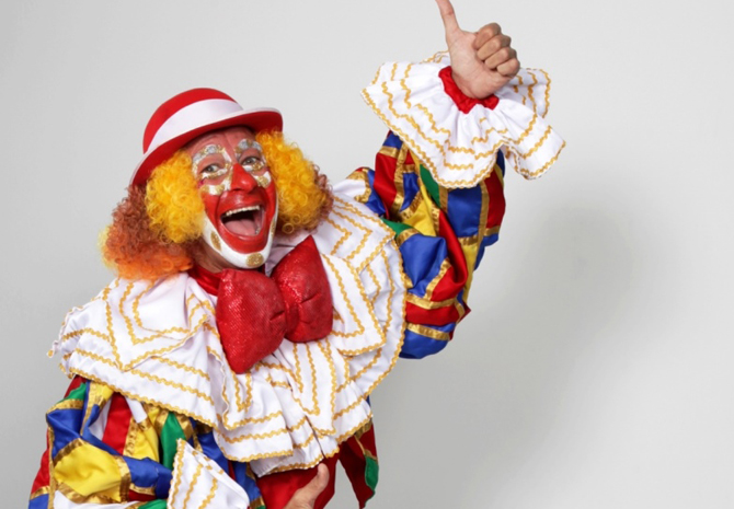 O famoso Palhaço Chocolate anima a prévia do Pinto da Madrugada, amanhã, das 11h às 14h, no Clube Português.