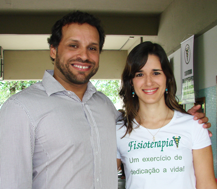 Flávio Maciel, presidente do Sinfito/PE e Cristiana Machado, da UNICAP, comemoram o Dia do Fisioterapeuta e do Terapeuta Ocupacional.