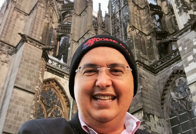Hugo Gonçalves diante da Catedral de Colonia (Foto: Divulgação)