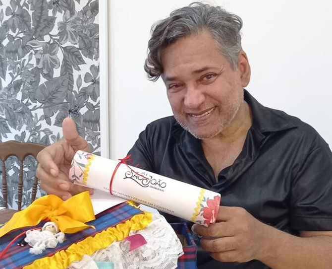 Romildo Alves mostra o convite da festa junina de hoje (Foto: Acervo da família)