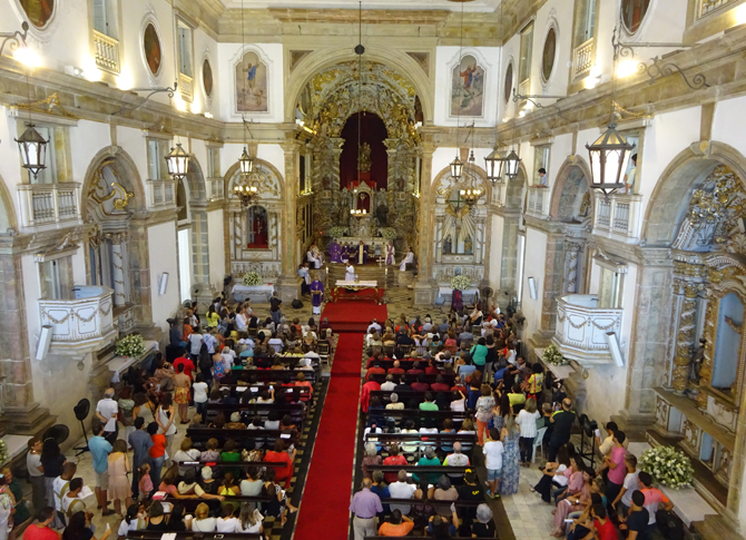 Sua beleza, entretanto, permanece imaculada. No seu interior, é possível encontrar pinturas sacras, mobiliário em jacarandá e a imagem do Senhor do Bom Jesus dos Passos. Pois bem, ontem, às 11h, aconteceu a cerimônia de posse do novo paróco, quando Padre Roberto Nogueira passou as funções para Frei Rinaldo Pereira. A cerimônia começou com a chegada do Bispo Auxiliar da Arquidiocese de Olinda e Recife, Dom Antonio Tourinho, ao som da música “Sou bom Pastor ovelhas guardarei, não tenho outro ofício, nem terei, quantas vidas eu tiver, eu lhes darei”.