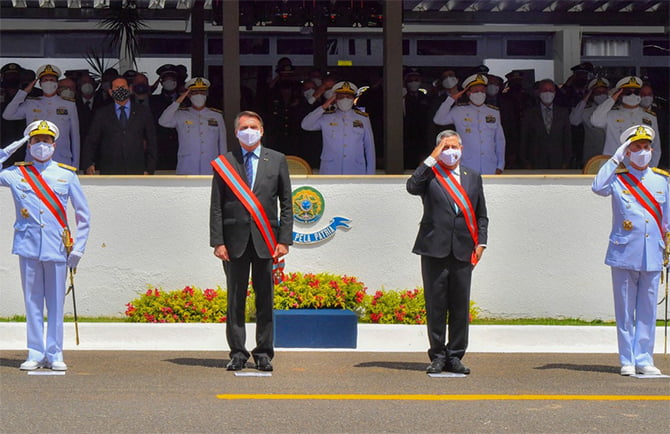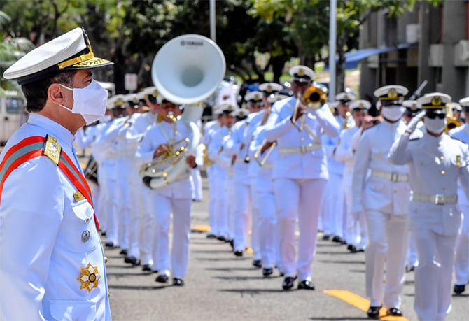 Às margens do Lago Paranoá e sob o céu azul, Fuzileiros Navais trajando a bela farda branca de gala e portando seus fuzis aguardavam enfileirados o início da cerimônia. À esquerda do púlpito de autoridades, ficou posicionada a Banda Grupamento de Fuzileiros Navais. Foi nesse cenário, no pátio do Grupamento de Fuzileiros Navais, em Brasília, que o Almirante de Esquadra Almir Garnier Santos assumiu o Comando da Marinha do Brasil, na manhã de ontem. O Ministro da Defesa, Walter Braga Netto, acompanhou o Presidente da República, Jair Bolsonaro, na solenidade.