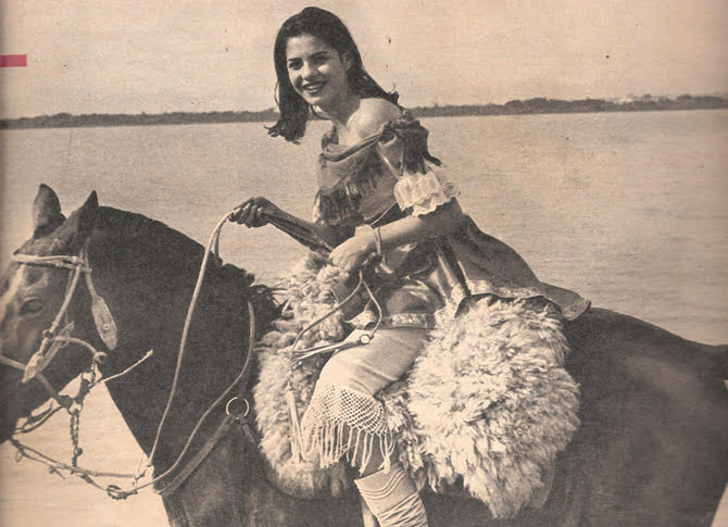 Ieda Maria Vargas desfilando sua elegância montada num cavalo (Foto: O Cruzeiro)