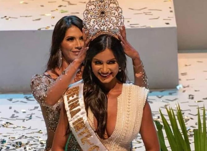 Iris Guerra coroando Ismelys Velásquez (Foto: Transmissão)