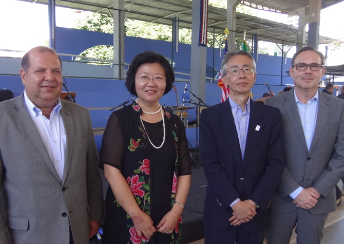 Giovani Oliveira, a cônsul da China Yan Yuqing, os cônsules Jiru Maruhashi e Marco Ferreira de Melo (Foto: Fernando Machado)